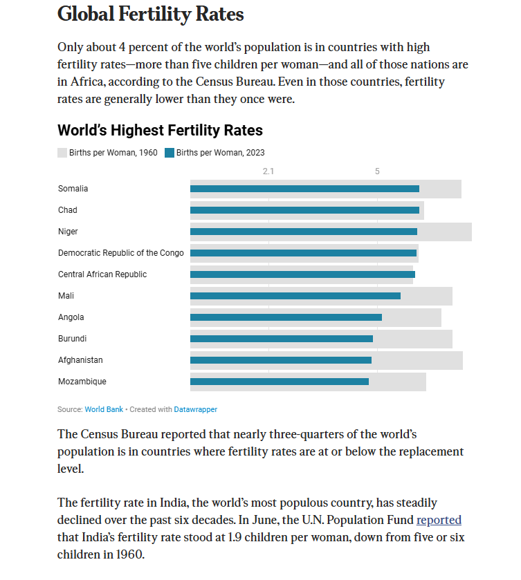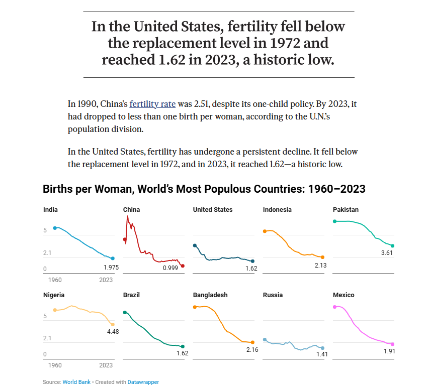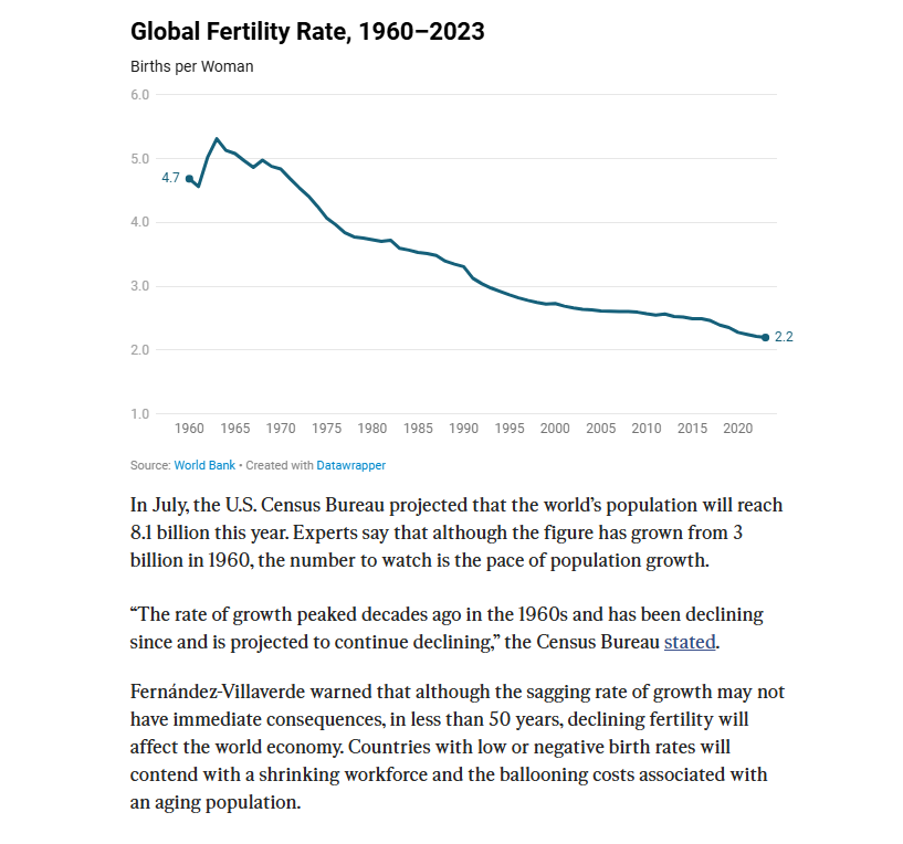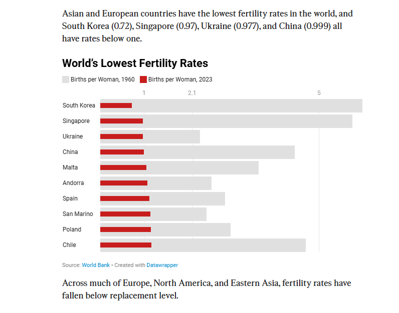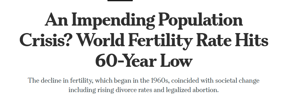One part of the declining birth rate is that liberals like Bill Gates have spent billions trying to reduce birthrates (as they falsely claim the world is over-populated). See the link “Globalist Great Reset” for more details. These liberals actually shame people from having more children (as if this is a bad thing). This goes directly against the biblical mandate that we are to be fruitful and multiply. Almost every advanced country on earth now has lower birthrates than death rates – meaning their populations are aging and do not enough new babies being born to replace those who die. This is part of leftist ideology promoted also by the CCP of China that enforced a one-child policy upon their people (even mandating abortions upon parents) if they had more than one child. Now the same CCP has reversed their stance and is asking people to have more children because they are running out of people to staff their military and other key spectrums of their society. Another aspect is that if people are pressed with economic lack, (also a product of communism) they will be forced to stop having children because they cannot afford them. This is part of Satan’s agenda to depopulate heaven by stopping human births on earth (using liberal shaming for having children) (as well as economic oppression) so people cannot afford to have children. – Comment by Kenneth Popken