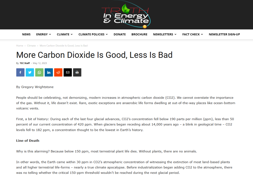 Additional information on CO2’s benefits and related topics are available at CO2Coalition.org, which includes a number of publications and resources of interest.